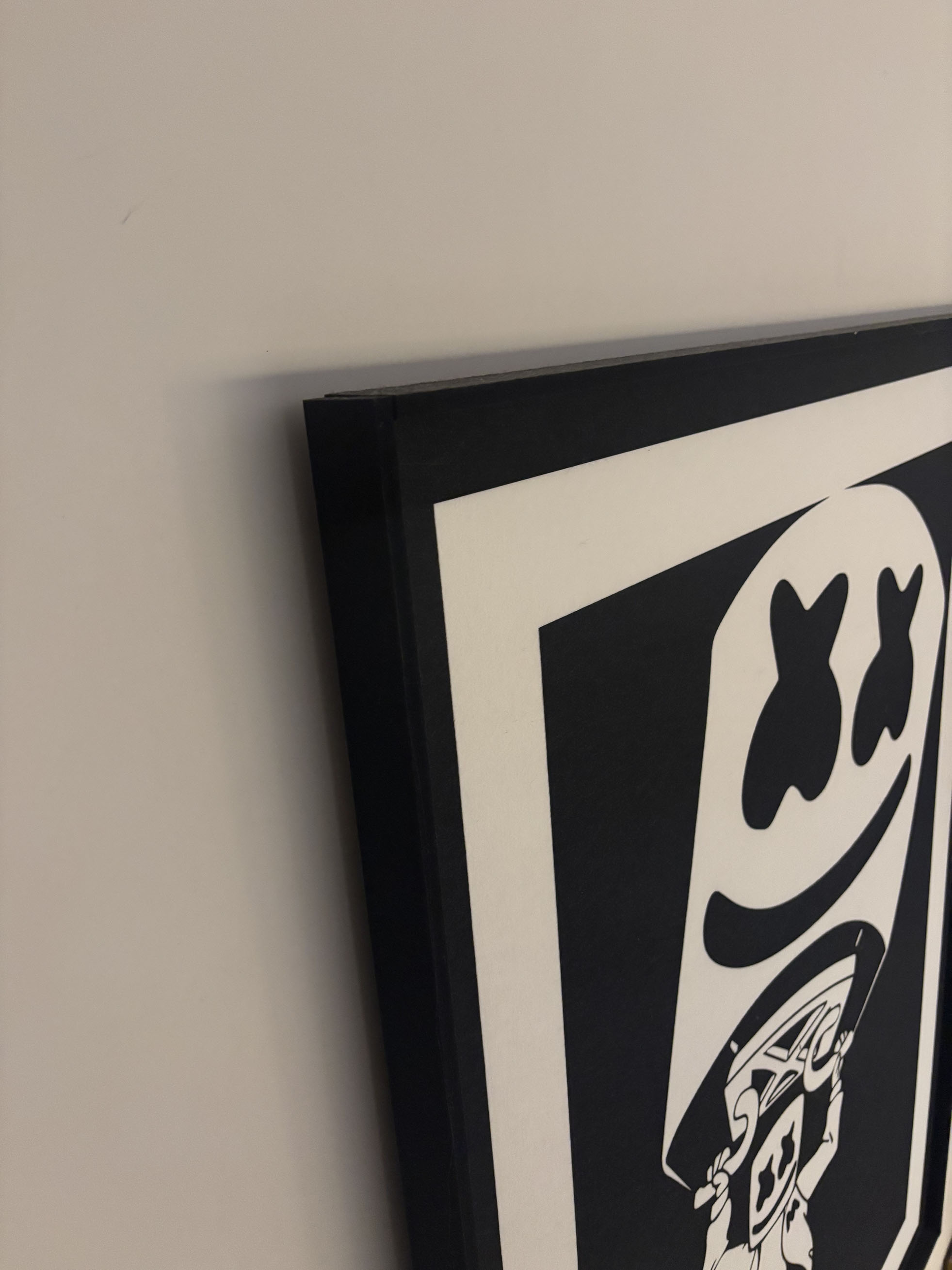 Het paneel is gemaakt van 9 mm PET-vilt, een duurzaam en geluiddempend materiaal dat ook nog eens superlicht is. Het ophangsysteem is slim geïntegreerd en gemaakt van hetzelfde vilt, waardoor alles mooi één geheel vormt. Als finishing touch hebben we er een strak kader omheen gezet, ook uit 9 mm vilt, zodat het echt helemaal af is.
